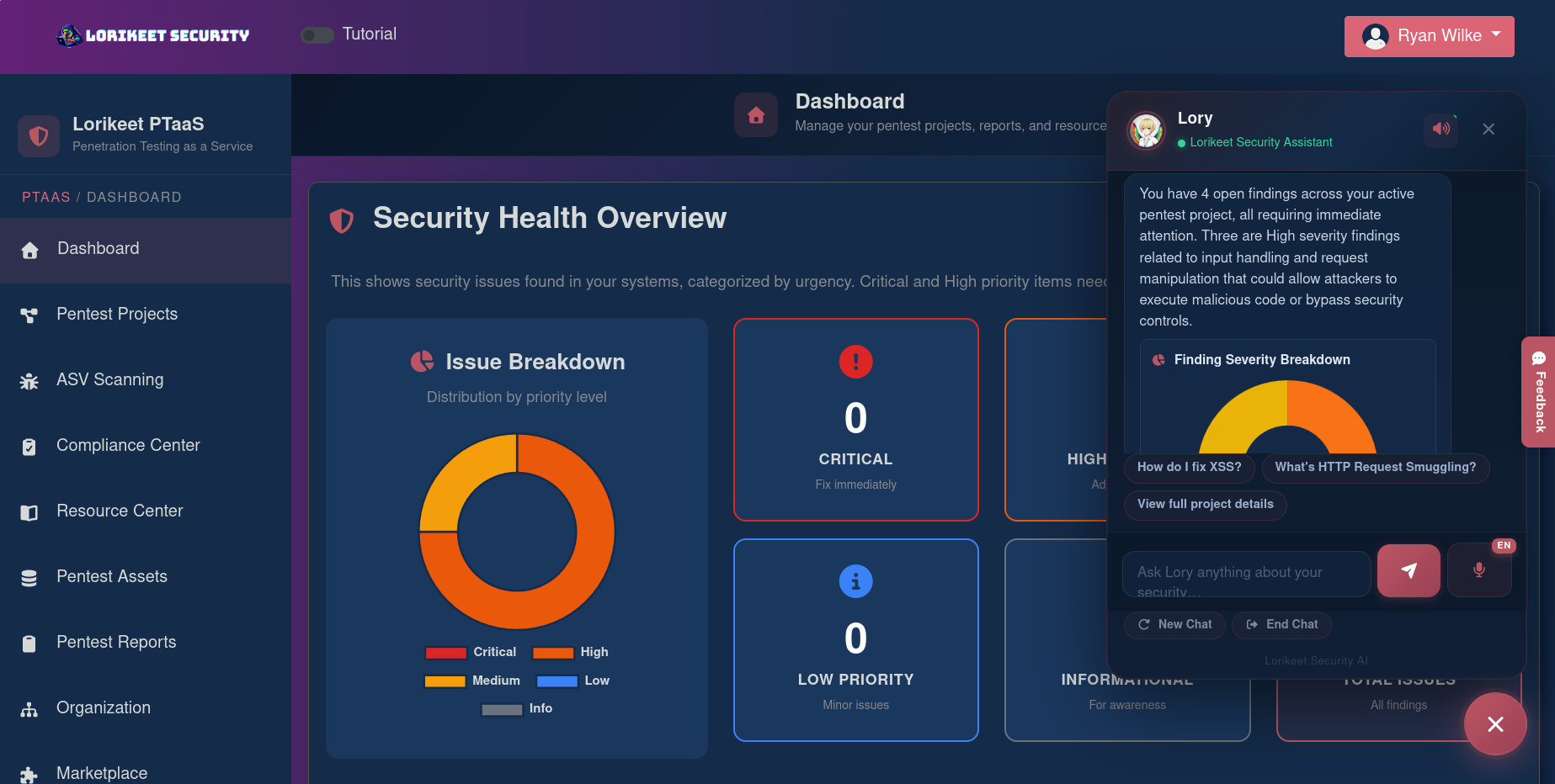 Lorikeet Security offers a comprehensive offensive security platform for vulnerability management, penetration testing, and compliance automation.
